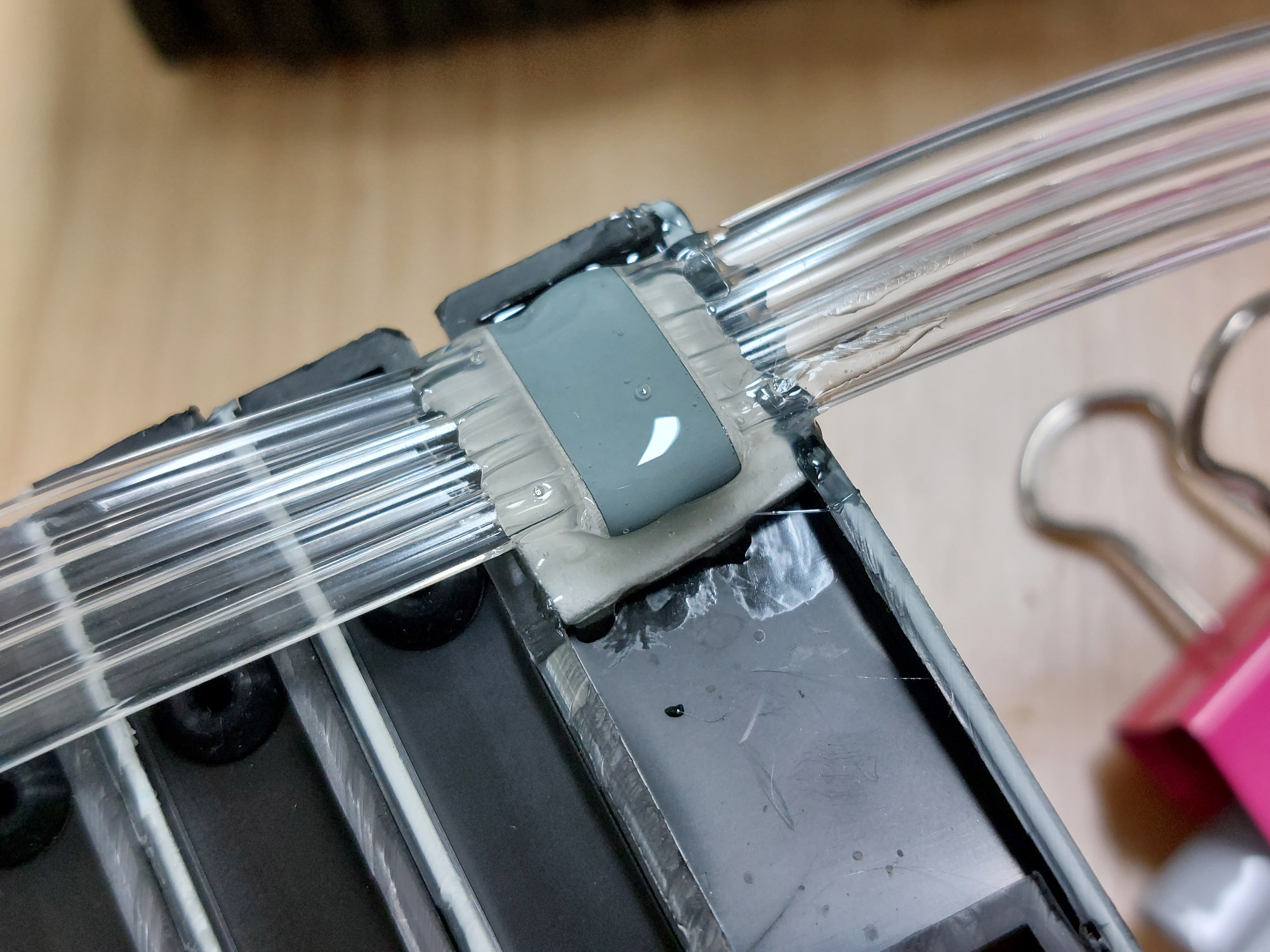 이 메탈클램프를 구부려 잉크호스를 잡아주고 있습니다.