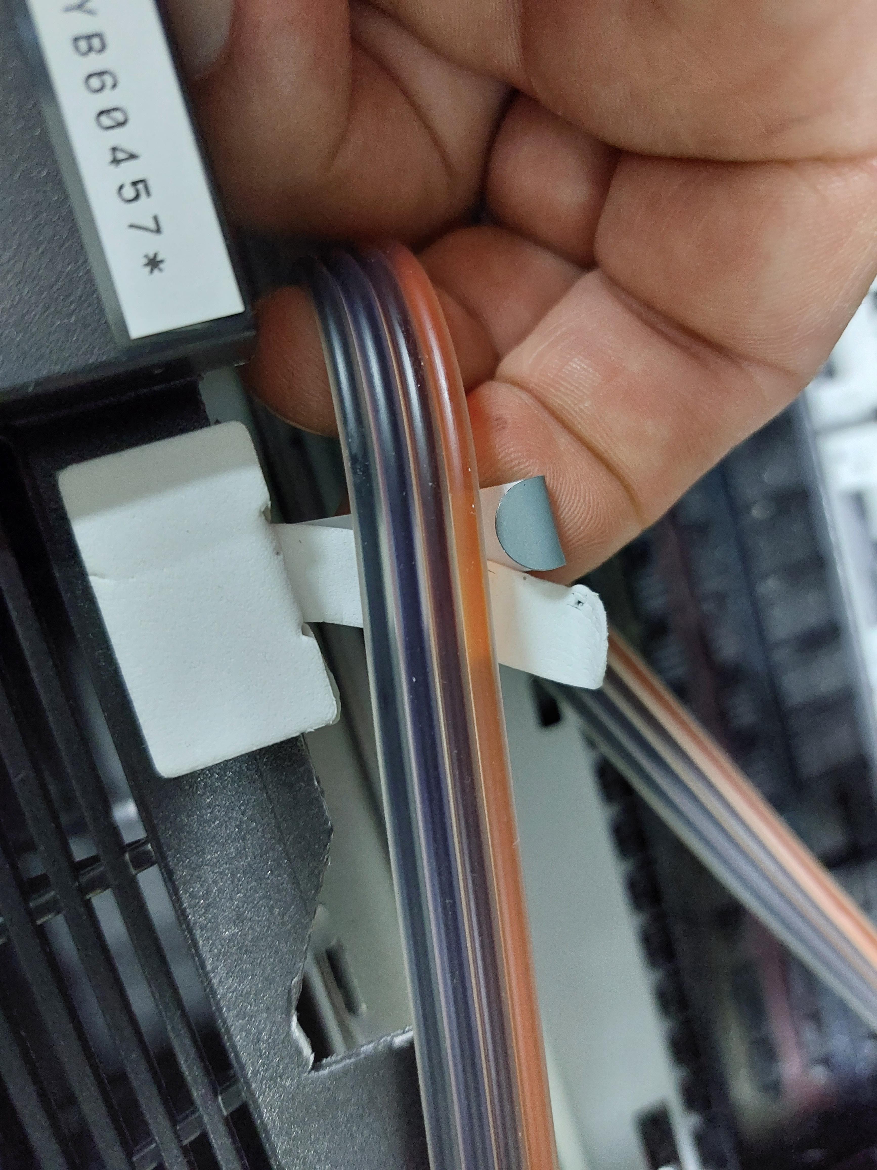 이 메탈클램프를 구부려 잉크호스를 잡아주고 있습니다.
