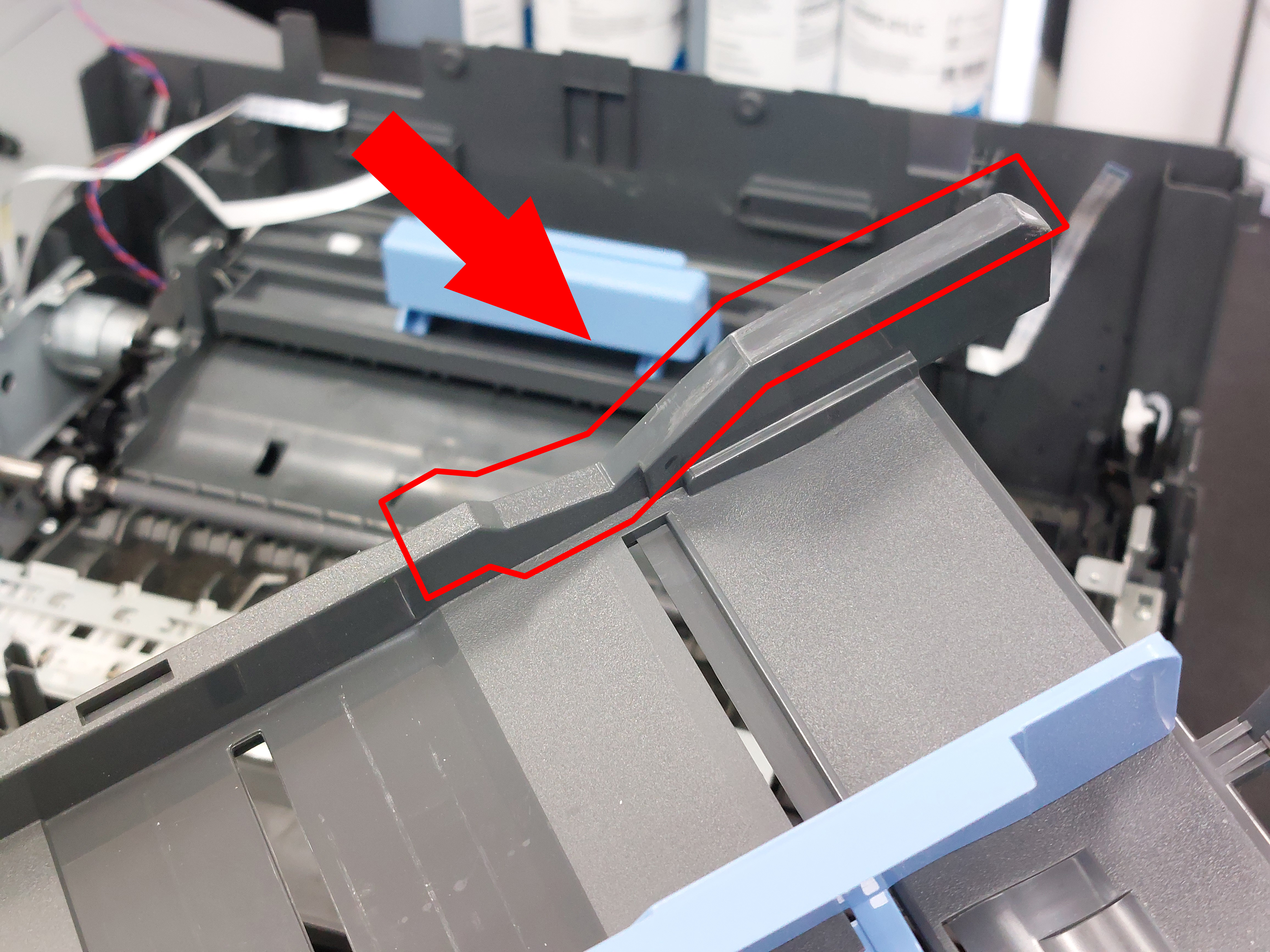그 용지함과 랜딩레버가 맞 닿는 부분,