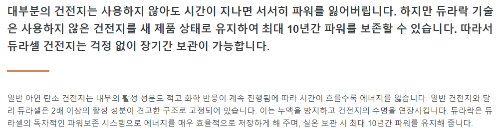 듀라셀이 듀라락 기술로 파워 보장을 최대 10년을 한다고 해서