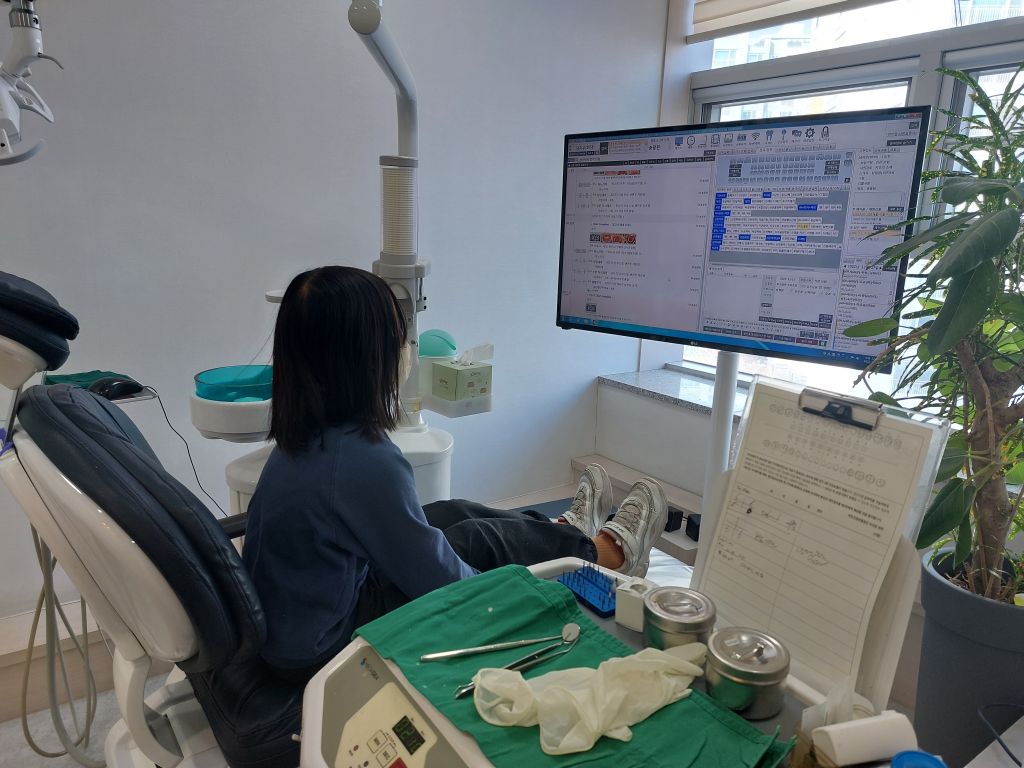 딸냄, 치과의자에 앉아 의사쌤 기다리는 중 !!