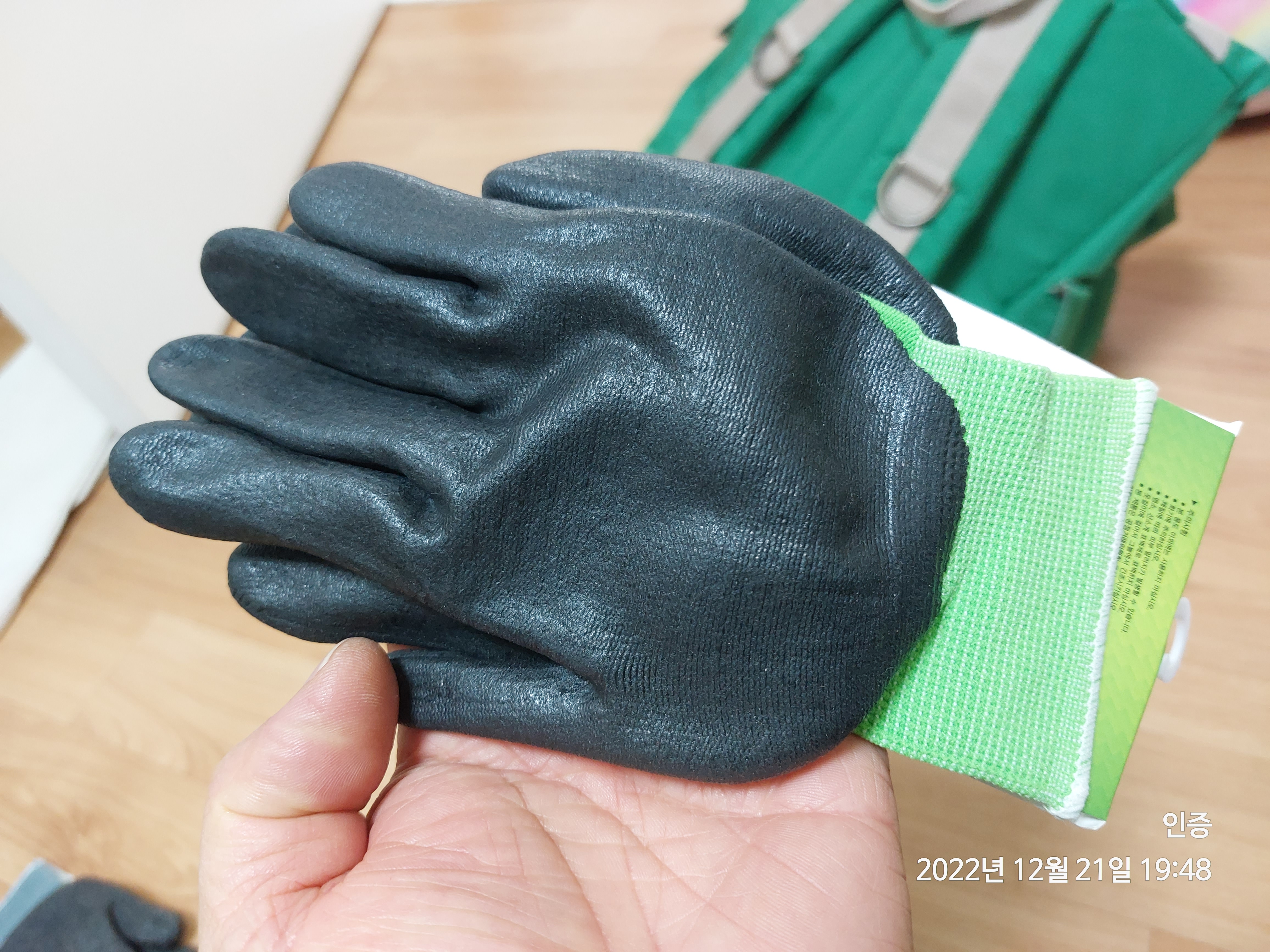 가방에 넣어 둔 장갑 상태가 어떤지 확인해 보았습니다..