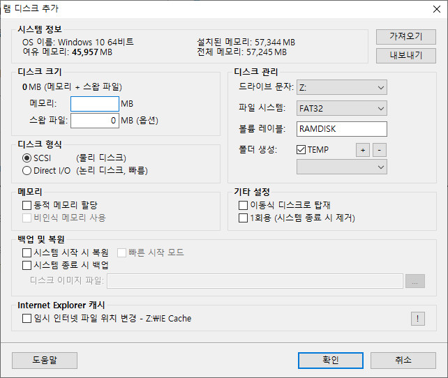 램디스크 추가 !!