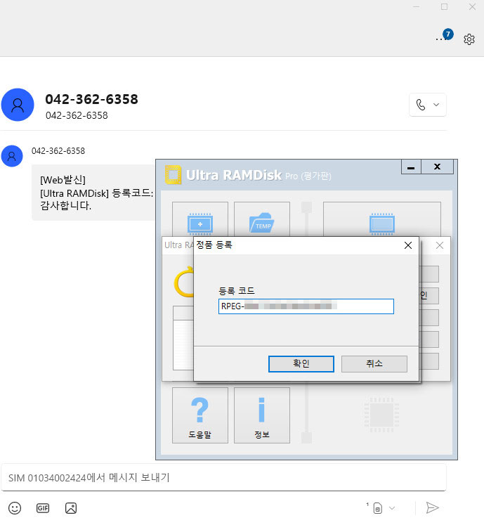 등록코드 입력을 하였습니다.