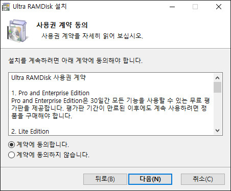사용권 계약에 동의 하고