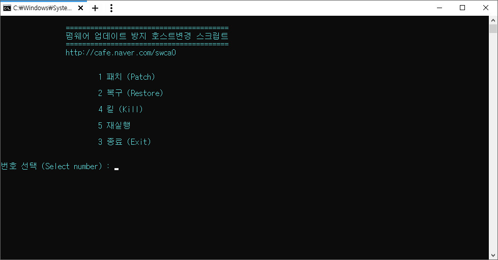 echo 펌웨어 업데이트 방지 호스트변경 스크립트
