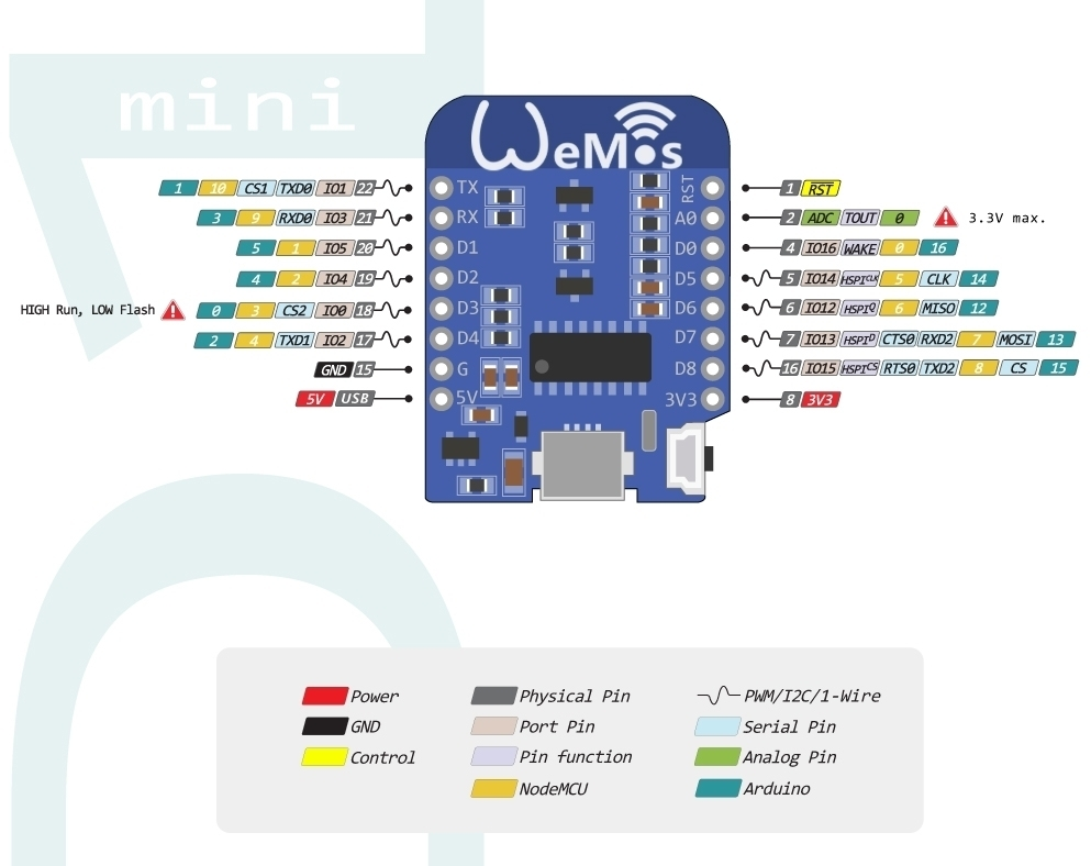 그리고 가장 중요한 부분이 D1 mini는 3.3v 기반 보드이기에 절대적으로 5V를 입력하면 보드가 사망할 수 있으니 주의해야 한다.