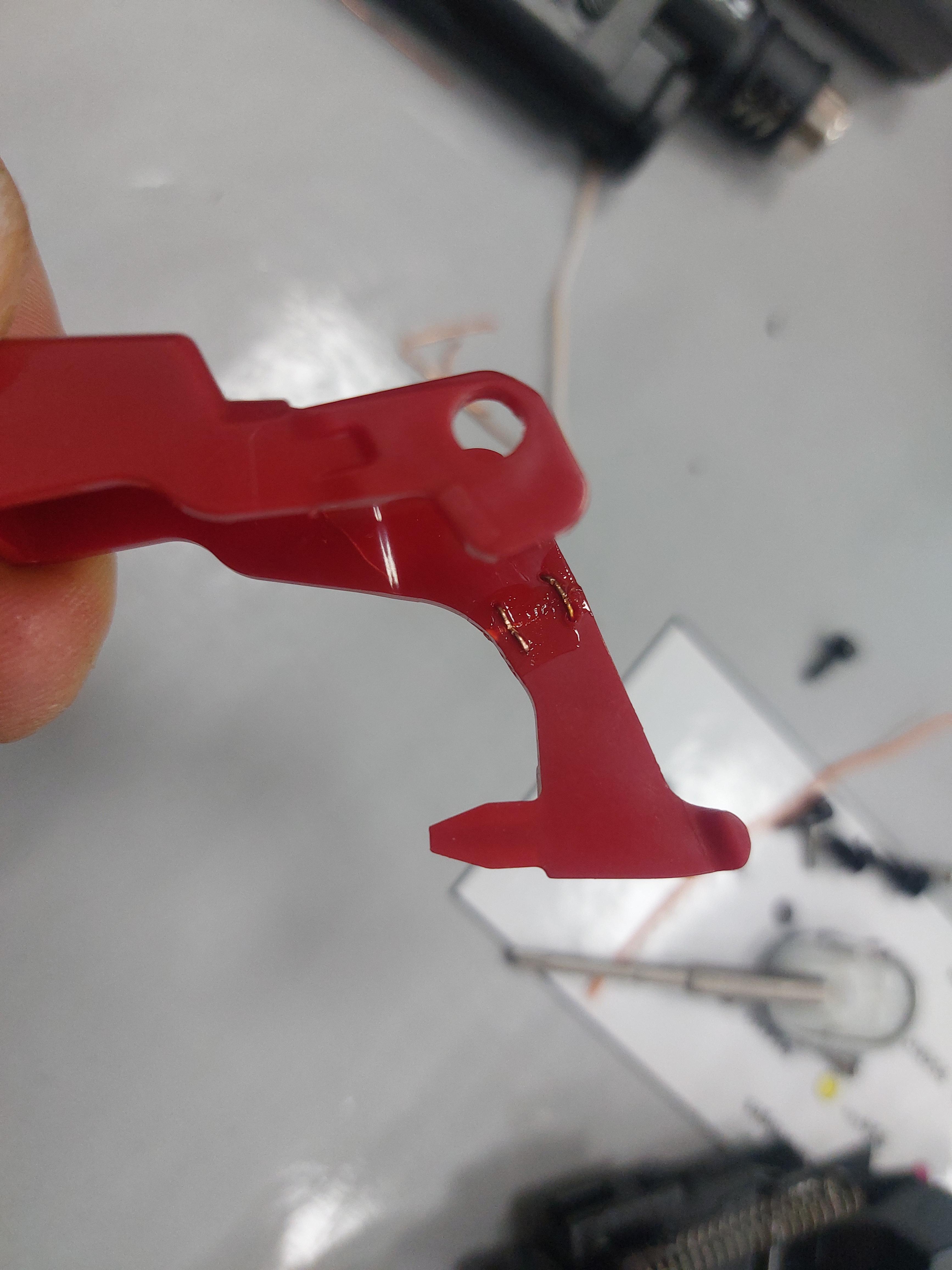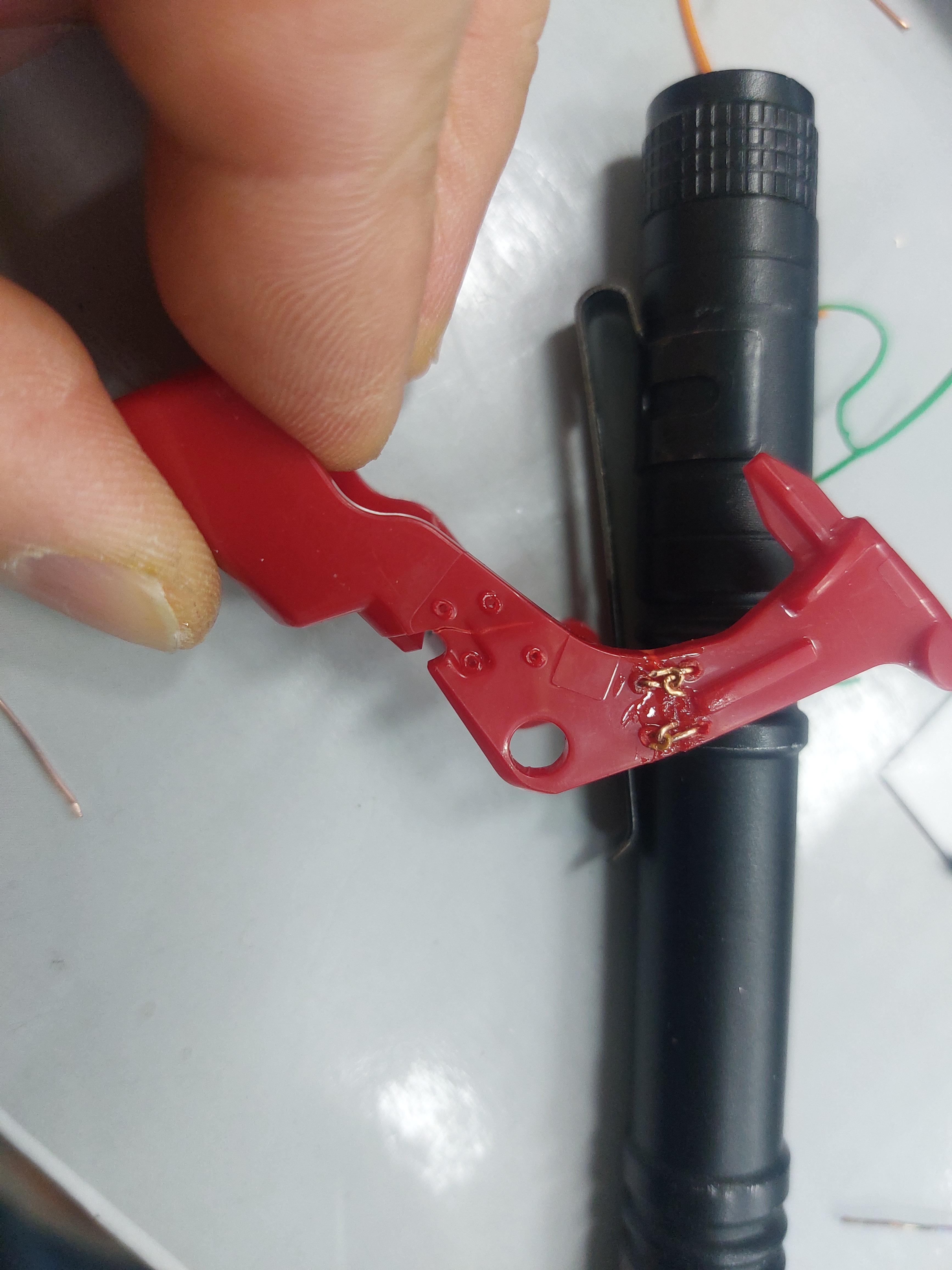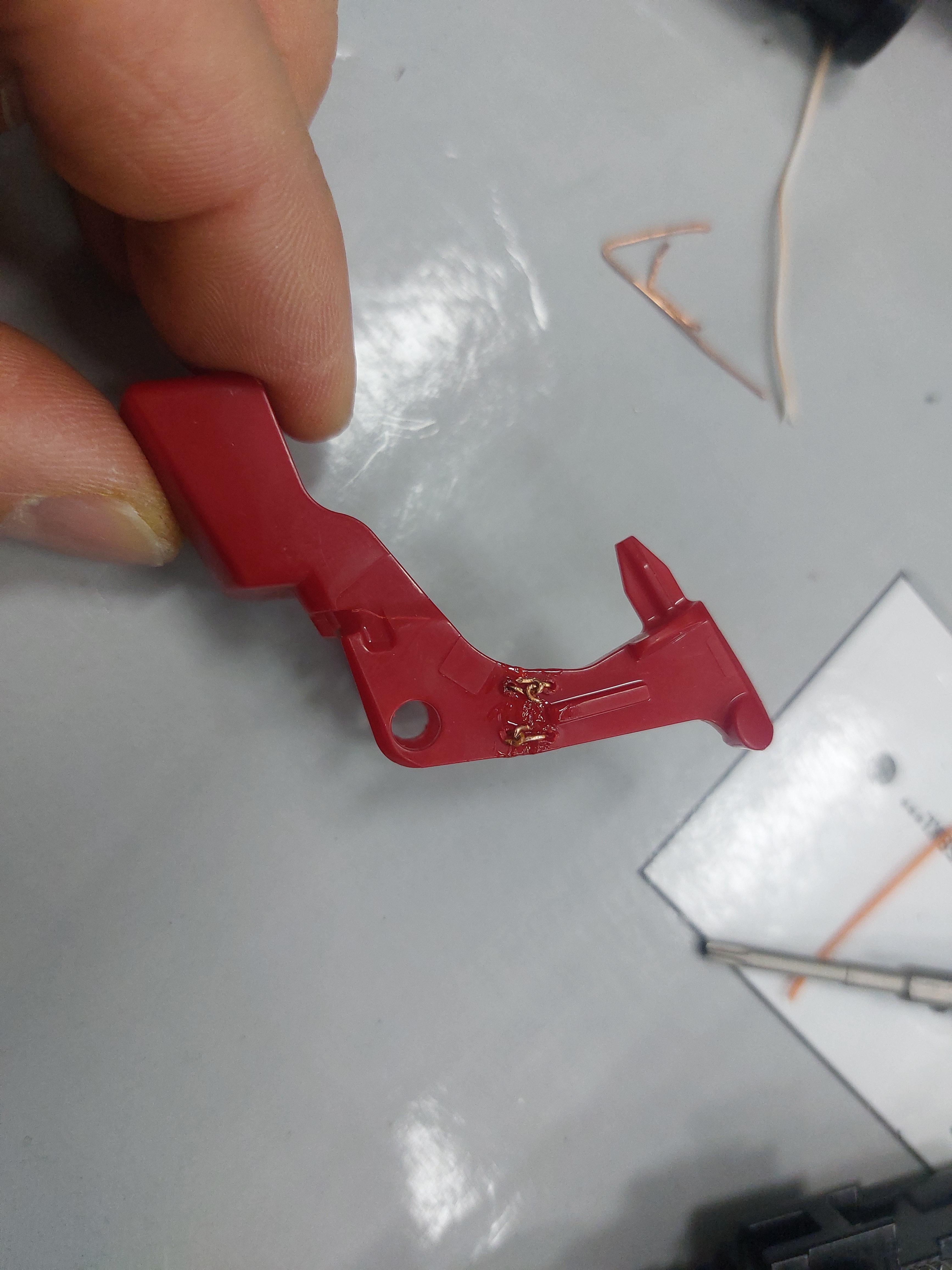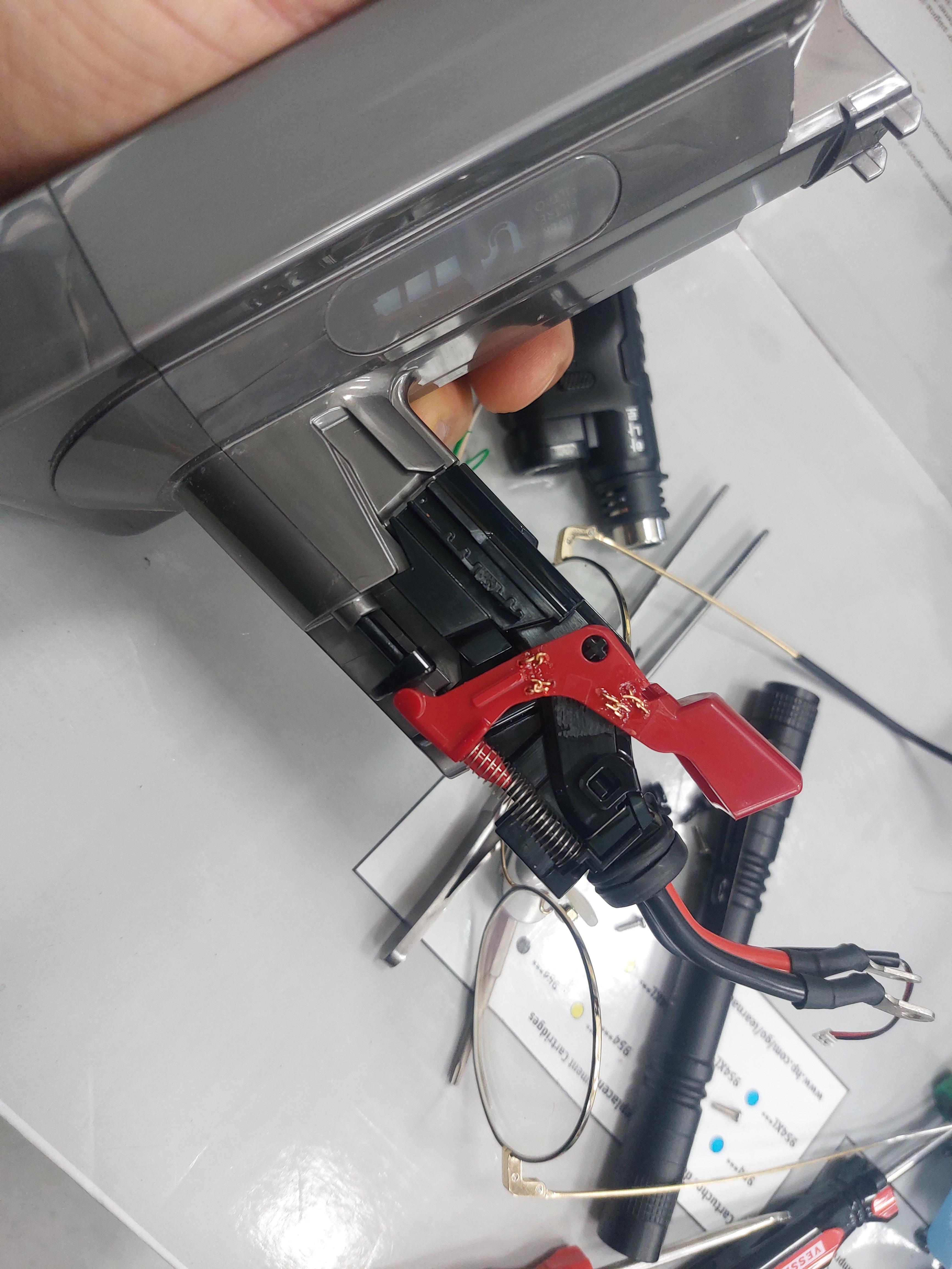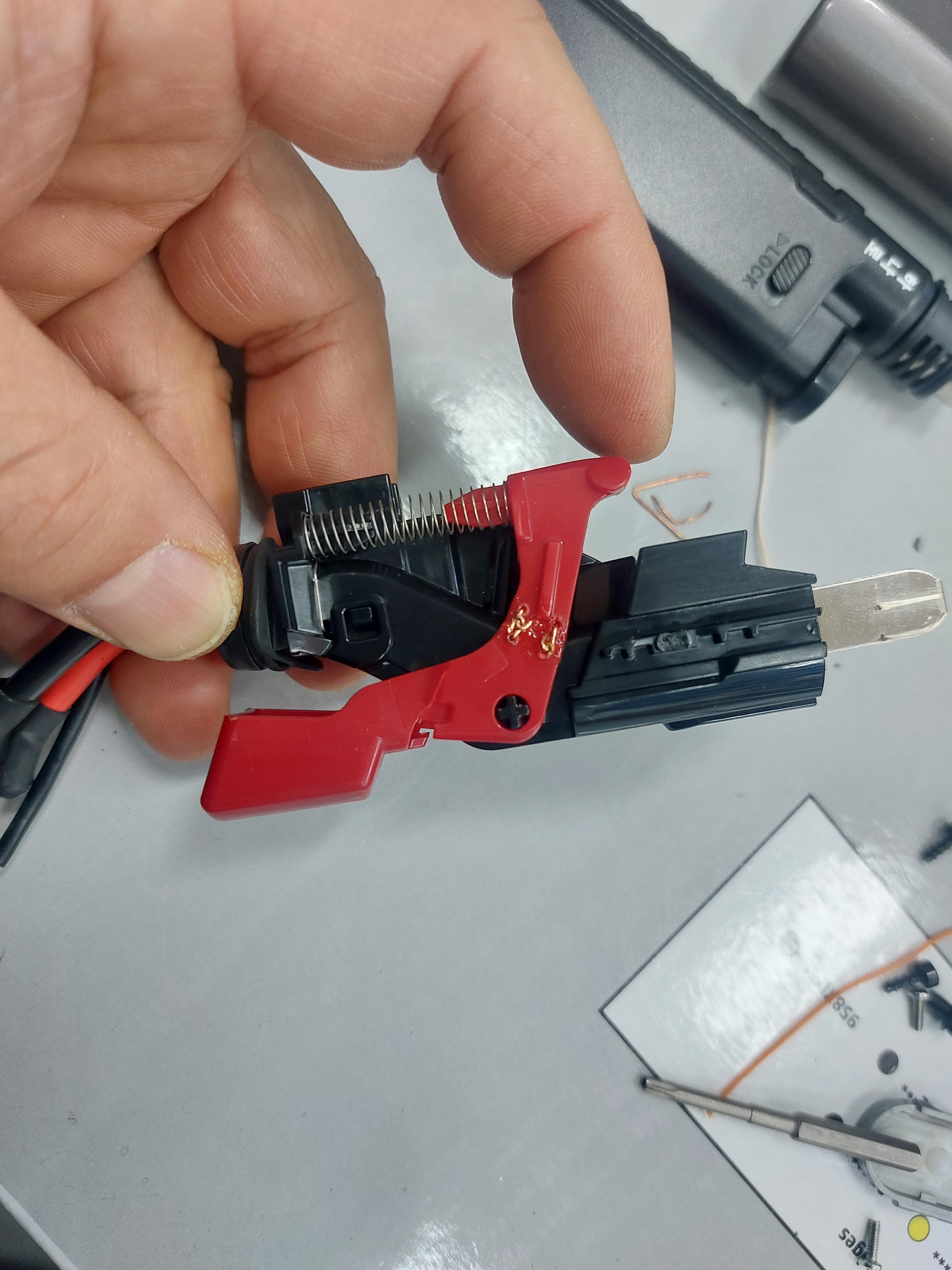 방아쇠 스위치 허리부분이 부러져 정상적으로 동작이 되지 않는 상황이었습니다.
