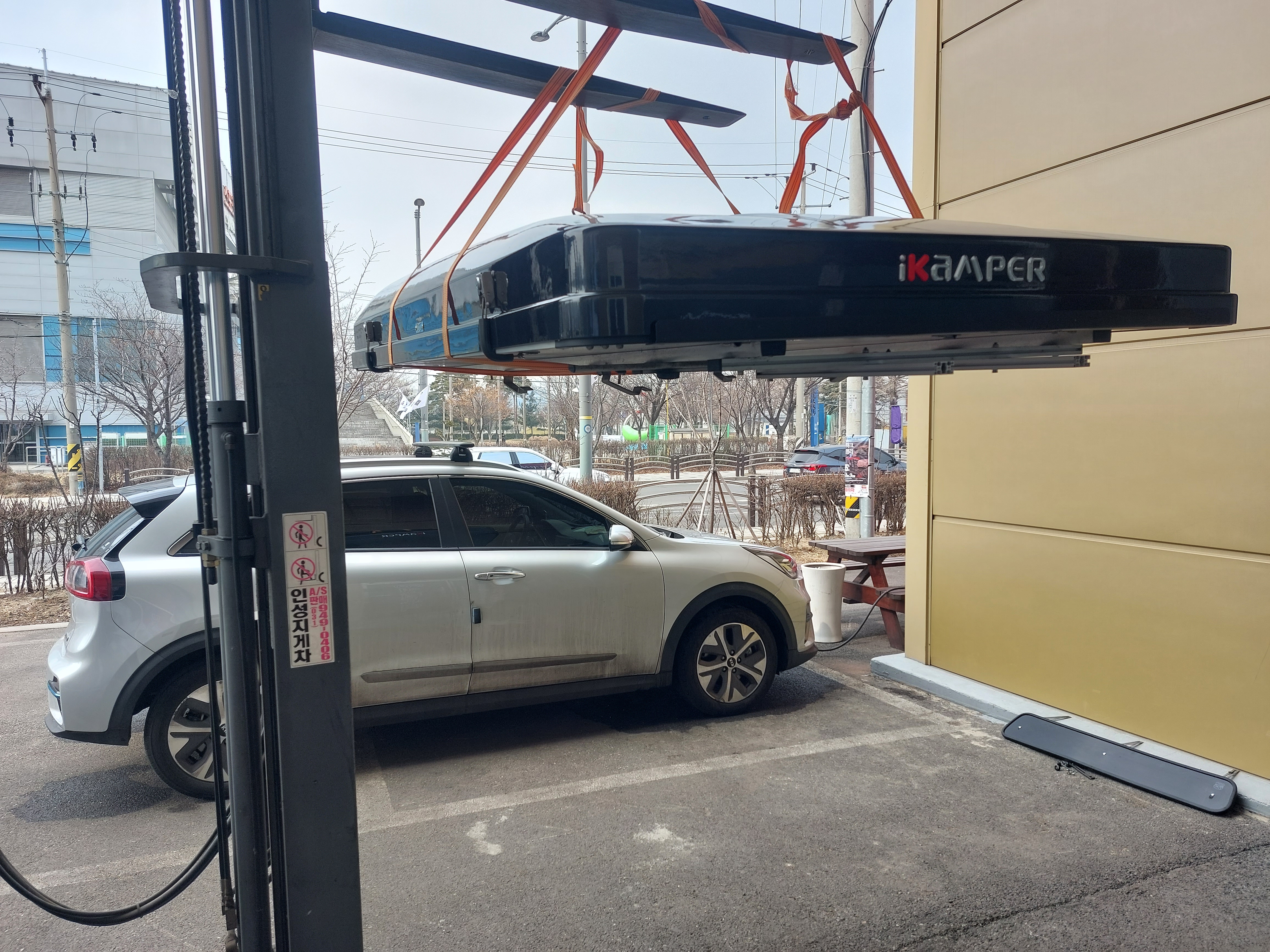 목디스크 터지고 당분간은 따땃하게 몸 좀 추스리고자 아이캠퍼를 봉인해 뒀습니다. 아침 일찍 출근하여, 가로바 고정용 볼트 모두 풀어 제끼고, 차후 장착할 일을 대비하여 매직으로 자리 표시