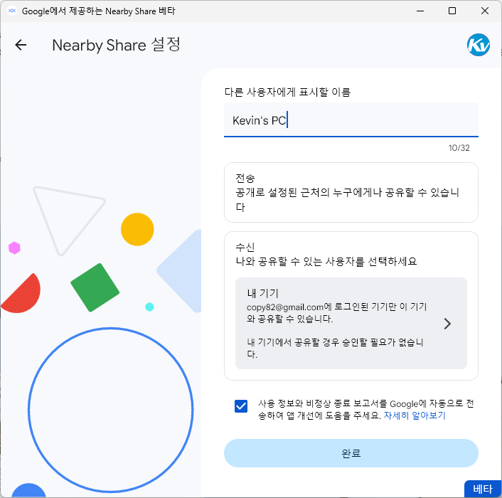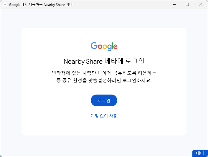 이름하야 Nearby Share 입니다.