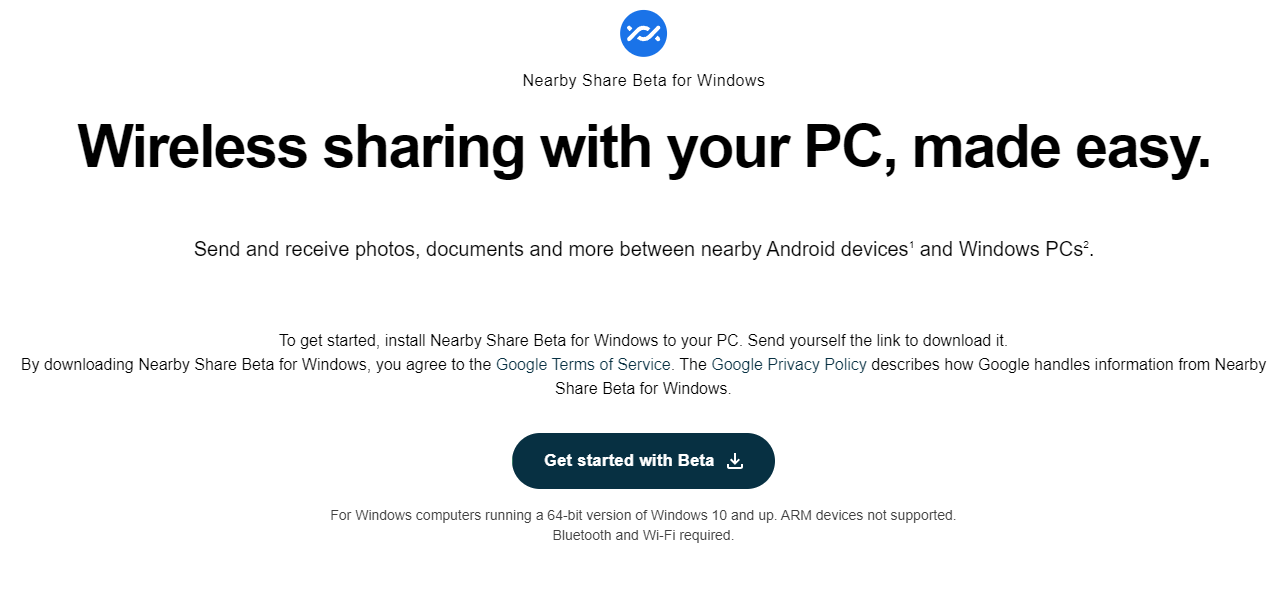 Wirelessly share photos, documents, and more between Android devices and Windows PCs by downloading the Nearby Share Beta for Windows App.