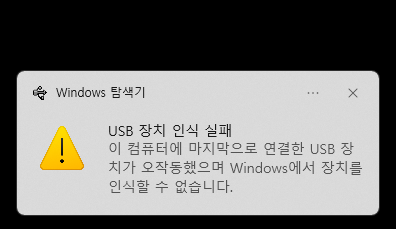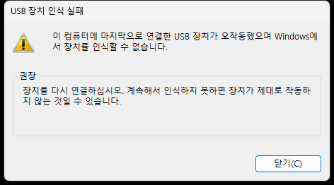 USB 장치 인식 실패... 눙물이... ㅠㅠ