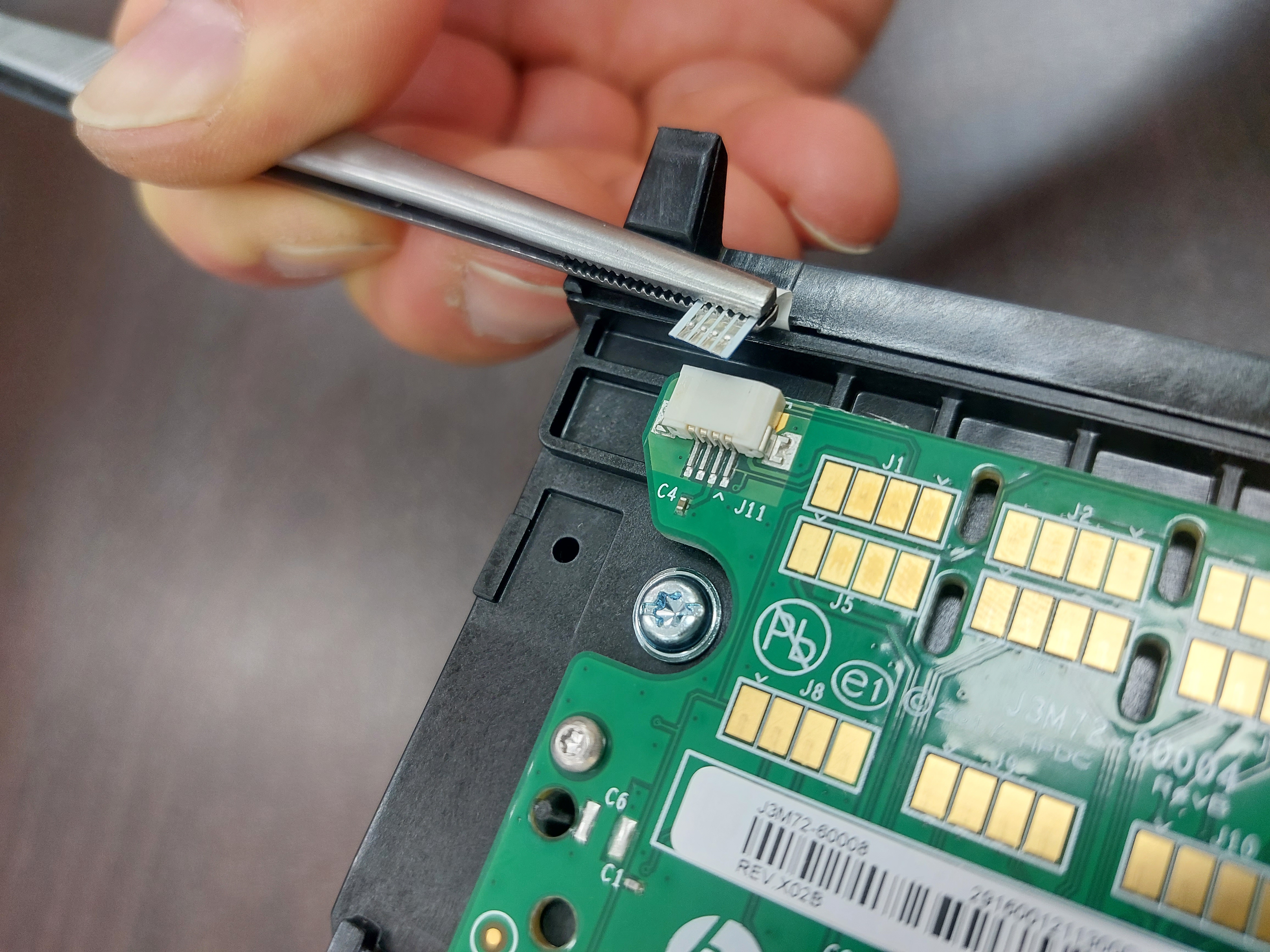 칩판을 부착할 헤드의 칩판 케이블을 핀셋 등으로 당겨 빼냅니다.