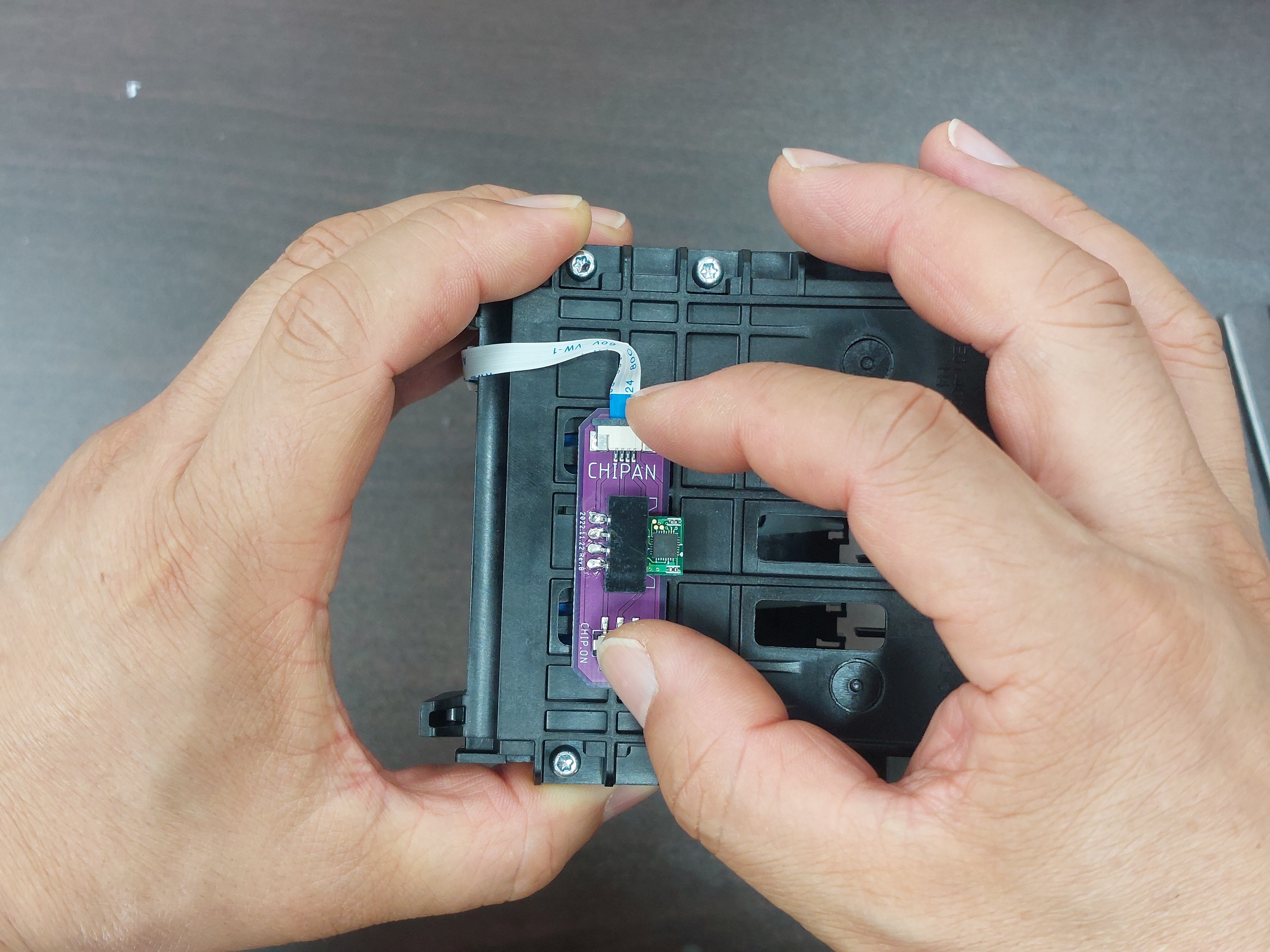 먼저, 칩판에 FFC케이블을 연결합니다.