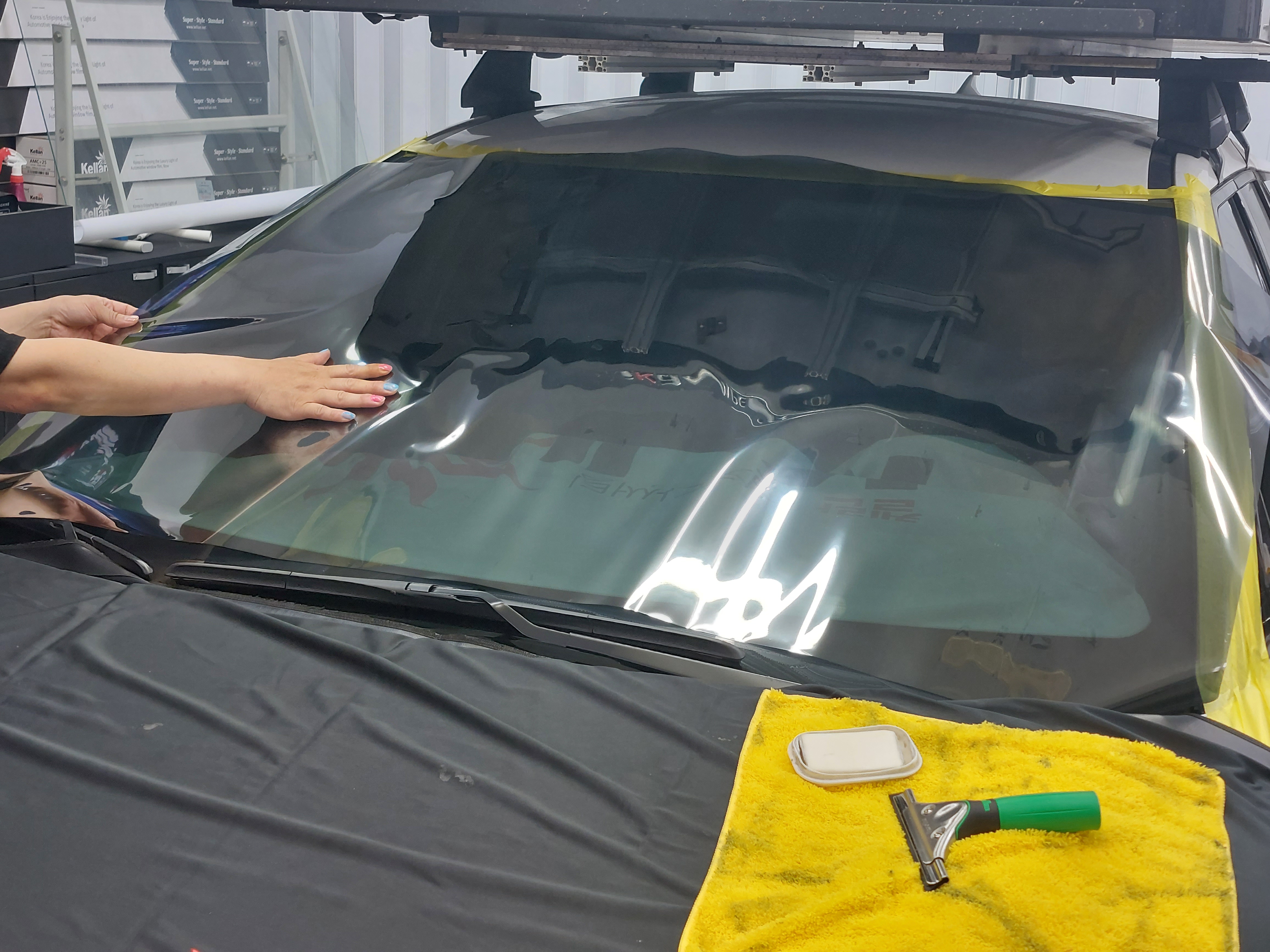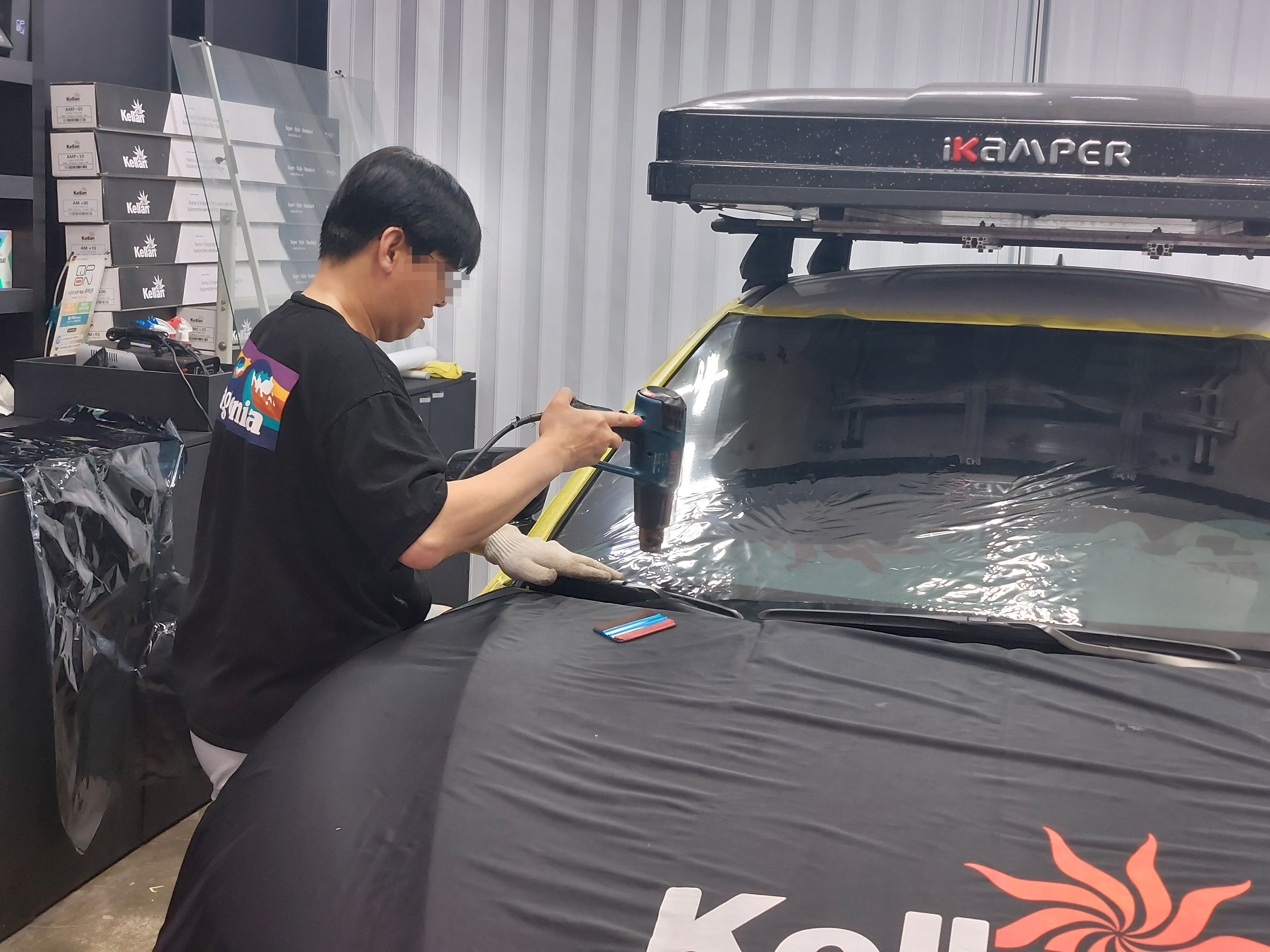 무척 깔끔하게 전면 썬팅이 교체가 되었고