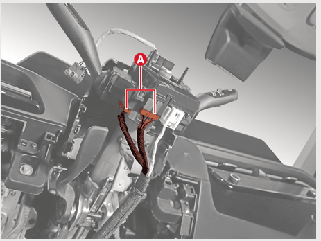 클록 스프링 와이어링 하니스와 멀티 펑션 스위치 하니스 커넥터(A)를 분리한다.