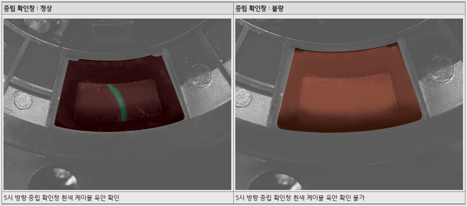5시 방향 중립 확인창 흰색 케이블 육안 확인 시 중립 상태이다.