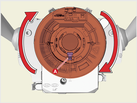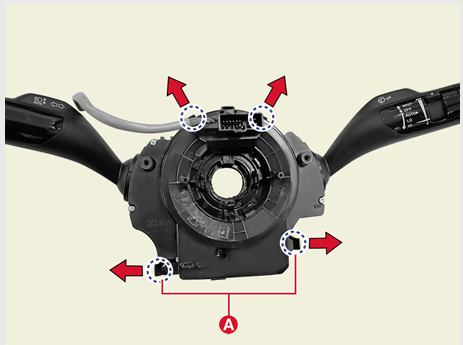 클록 스프링 와이어링 하니스와 멀티 펑션 스위치 하니스 커넥터(A)를 분리한다.
