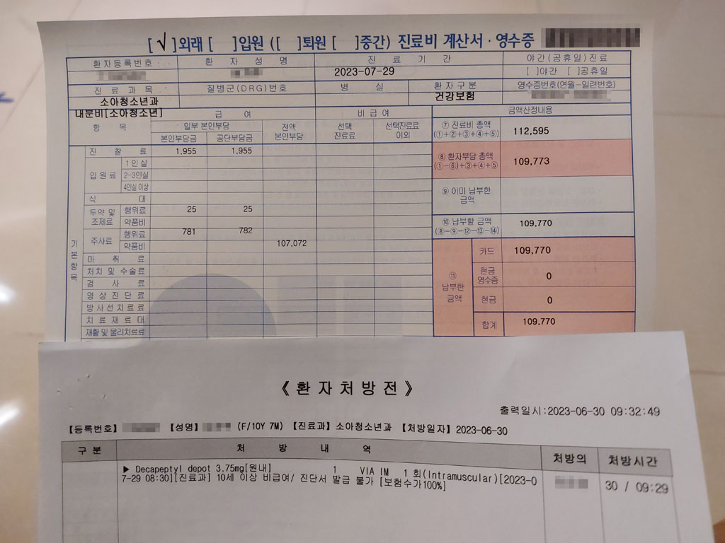 또 2주가 지난 지금 성호르몬 분비 억제주사를 맞으러 내원 하였습니다.