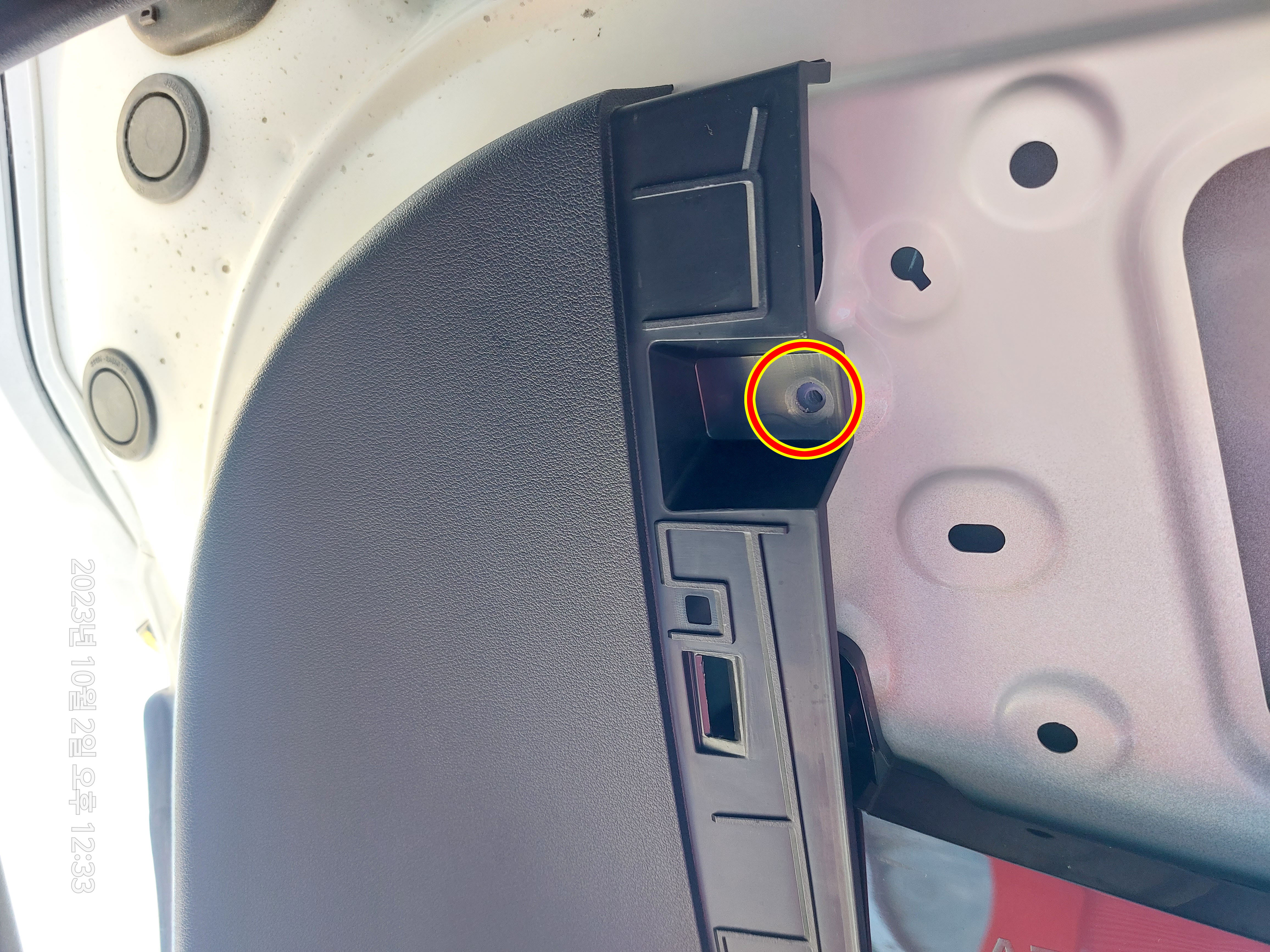 그리고 트러크 문짝을 올려다 본 후 아래 사진의 커버 (뭐라 불러야 할지..) 를 분리를 하는게 1순위입니다.